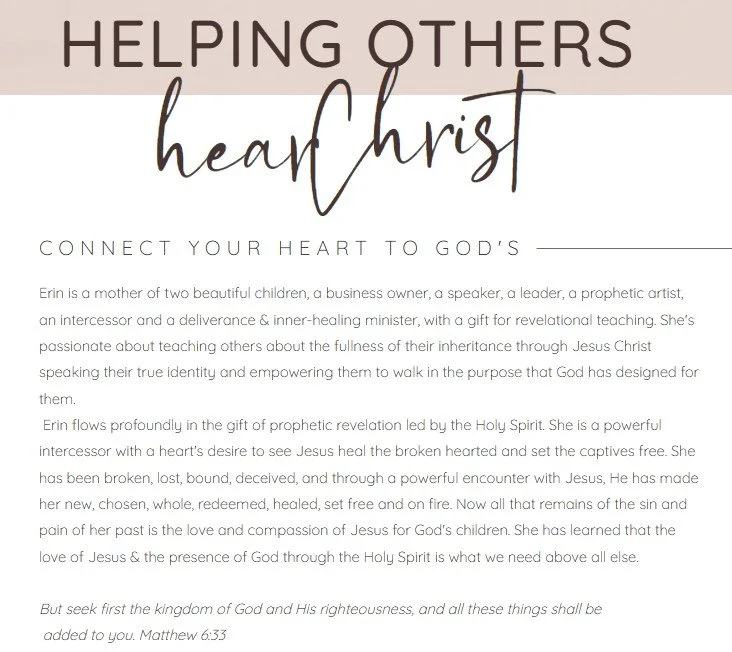 Heather O’Brien is an Author, Mentor, Evangelist, Business Owner, Heather is a prophetic healing coach, minister, author, and speaker. She helps Christians heal with God from trauma, anxiety, and depression by hearing God's voice.