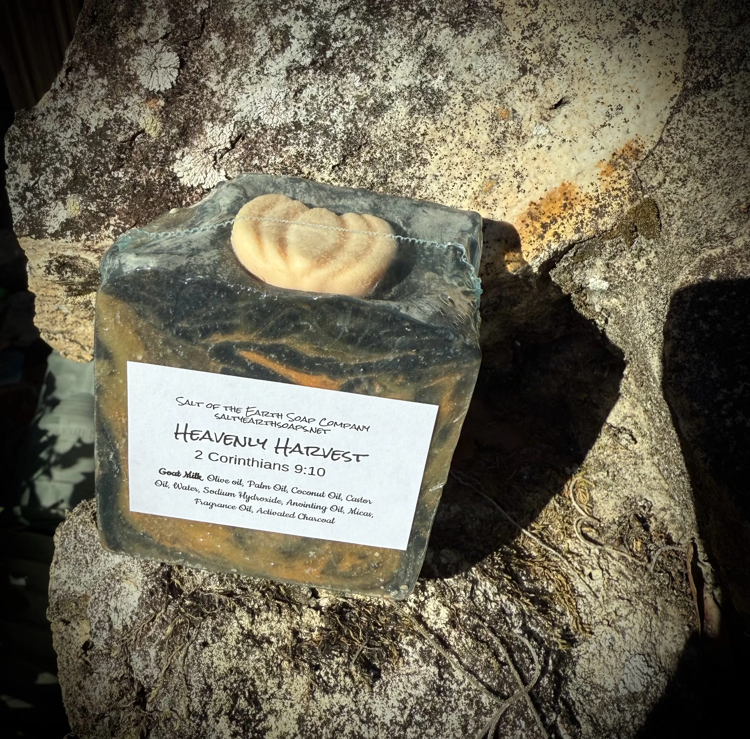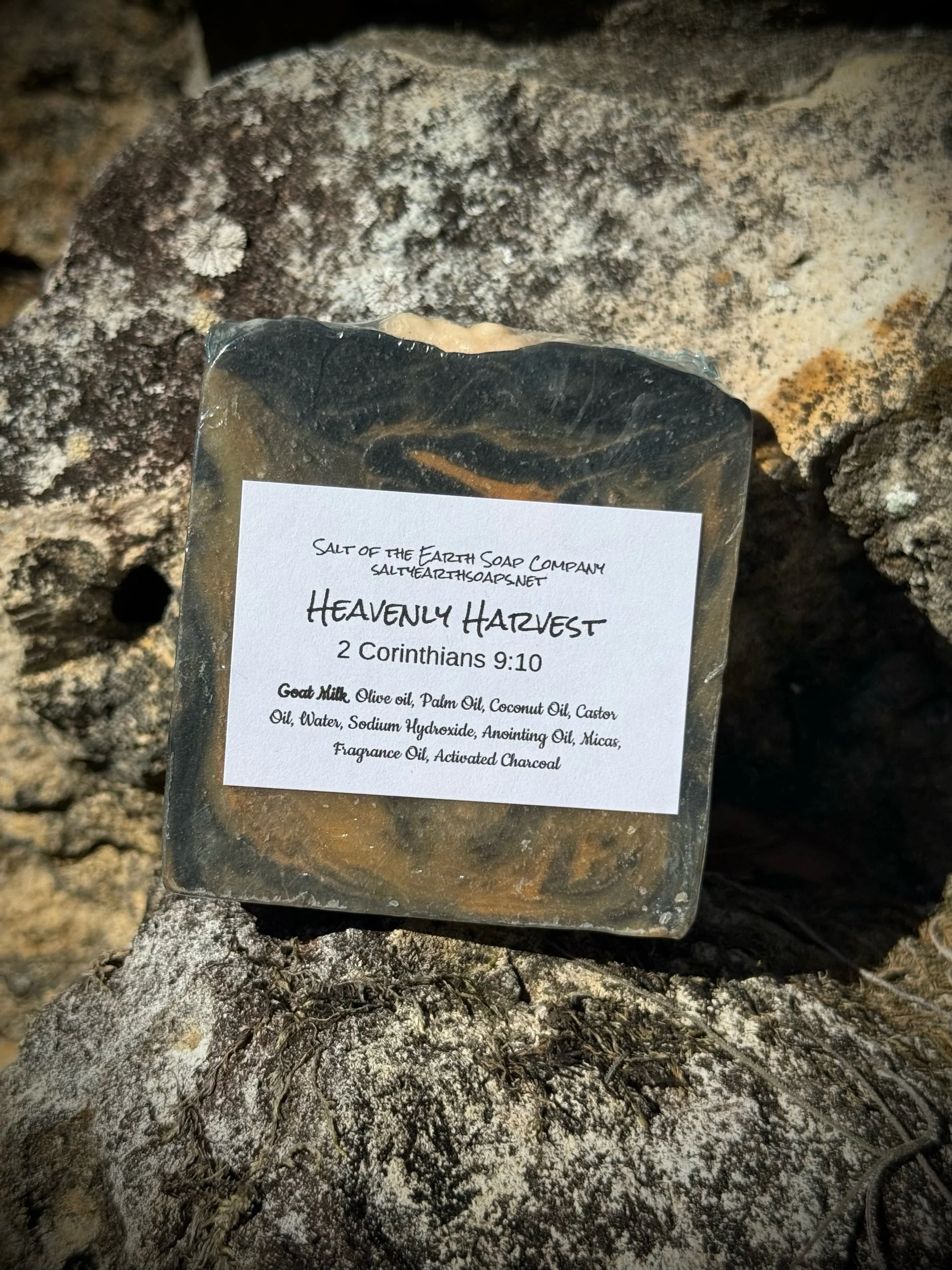 Ingredients: Goat Milk, Coconut Oil, Palm Oil, Shea Butter, Castor Oil, Olive Oil, Sodium Hydroxide (lye), Micas, Fragrance Oil, Inheritance Ministries Anointing Oil.