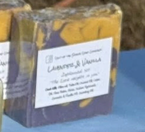🧼 Ingredients: Goat Milk, Olive Oil, Palm Oil, Coconut Oil, Castor Oil, Shea Butter, Sodium Hydroxide, Distilled Water, Lavender & Vanilla Fragrance Oil, Micas.